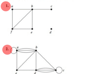 3) Encontre a soma do grau de cada vértice dos exemplos 1 e 2 abaixo, e verifique que seu valor é o dobro do numero de arestas no grafo.